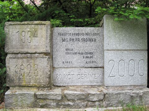 Při svých návštěvách na Čeřínku se mohou lidé zastavit u Srdínkovy pamětní desky, znovu odhalené 24. června 1995 při příležitosti otevření zrekonstruované původní chaty z roku 1913. Na kamenných kvádrech v sousedství obou turistických chat je možné přečíst si letopočet 1923, což je vzpomínka na rok stavby velké chaty a také nezapomenutelný letopočet 1934. V úterý 16. ledna toho roku byla chata, turisty tolik milovaná, zničená do základů ohněm. Potěšitelné je, že už 2. září 1934 byla otevřena chata nová, tentokráte zděná, v jejíž čelní stěně byla zasazena žulová deska jako vzpomínka na zemřelého prvního předsedu klubu. Požáru dřevěné chaty se totiž František Srdínko nedožil, zemřel tři měsíce před tím, a tak klub Čeřínek postihly tehdy krátce po sobě dvě velké ztráty.
