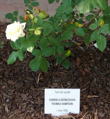 a na další, u které je cedulička, že ji v roce 1998 zasadili Gabriela Beňačková a Thomas Hampson.