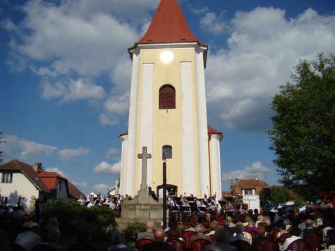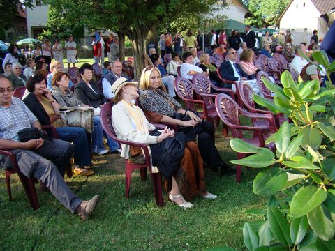 Nejen, že jsme poslouchali výtečné provedení koncertu vojenské hudby, ale měli jsme i štěstí, že prostor v malém vesnickém parčíku jsme sdíleli s mnoha vzácnými osobnostmi – za všechny se zmíním o dokonalé a fascinující paní Soně Červené, která přišla v doprovodu režisérky Olgy Sommerové. Parafrázuji její výrok při přebírání čestného členství Státní opery: Děkuji za všechny, na které jste se usmála…
