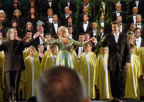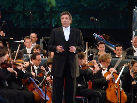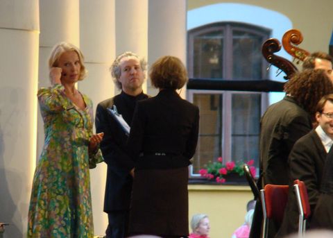 Mirkovy fotky jsou dělané z velké dálky, přesto si jich, i když jsou nekvalitní, považujeme. Na obrázku je mezzosopranistka Anne Sofie von Otterová s dirigentem Manfredem Honeckem před koncertem: