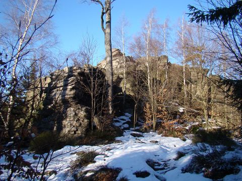 Procházka po modře značené cestě přes Brožovu skalku byla příjemná,