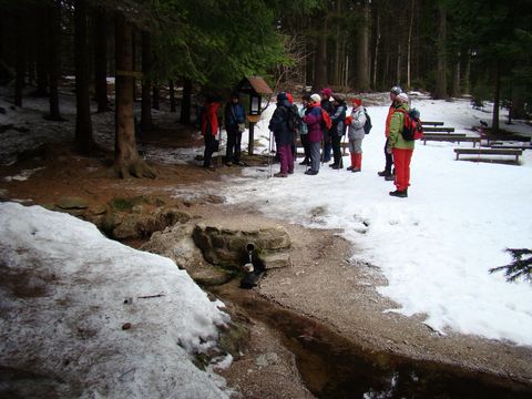 Každoroční únorový zájezd s Maruškou Hobzovou z KČT Bedřichov patří k zimním radostem, ať už se povedou běžky, či musíme, jako letos, chodit pěšky. Přijeli jsme v pátek ráno 11. února na naši základnu, která byla v chatkách „Na Mýtince“ u rybníka Sykovce, a protože pršelo, rozhodli jsme se po odložení zavazadel svézt se autobusem do Nového Města a doufat, že během dne se nebe ustrne. Zašli jsme do Horáckého muzea, prohlídli si město (o tom je více ve článku z roku 2009) – a bylo po dešti!