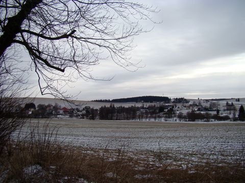Na Fryšavském kopci (800 metrů nad mořem) dost foukalo, a tak jsme se bez zdržování vydali do vesnice,