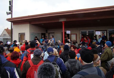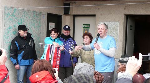 V Měříně měli letos o jeden pádný důvod víc – před čtyřiceti lety byl založený jejich turistický odbor, a tak si dali záležet na tom, aby zviditelnili výsledky soustavné práce, kterou po všechna ta léta dělají, a aby hosty přijali jaksepatří. Navzdory dosti chladnému počasí se nás ze širokého okolí sjelo asi 460 – všichni jsme byli srdečně uvítáni a při přihlášení na startu jsme dostali nejen podrobný popis tří tras pro pěší i pro cyklisty, ale také hutný výčet zajímavostí na trase. Úvodní ceremoniál byl radostný, známý odemykací klíč i letos otevřel dychtivcům všechny cesty v oblasti Vysočina a zbytku světa…