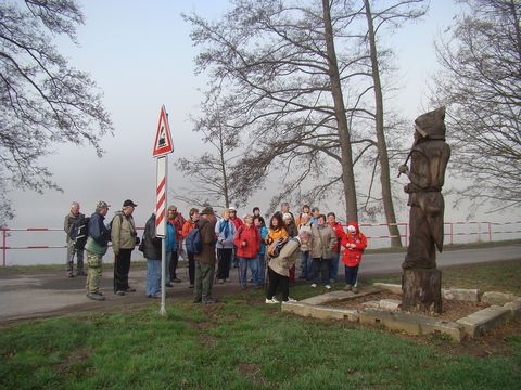 Vycházku naplánoval a vedl Ing. Krejčí. Po několika velmi chladných, deštivých a větrných dnech slibovali meteorologové podstatné zlepšení, což ráno při nástupu do vlaku nevypadalo jako pravdivá informace. Než jsme však dojeli do Jezdovic a dokončili obdivování sochy na hrázi rybníka, jehož druhého břehu jsme zprvu pro mlhu nedohlédli, začalo se počasí skutečně měnit.
