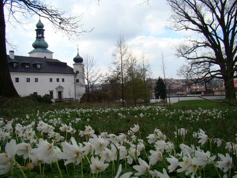 U hájenky jsme opustili zelenou značku a vydali se do Třeště po modré trase kolem pěti rybníčků, cestou lemovanou alejemi. Stromy i nebe se zrcadlily ve vodě, hladinu tu a tam zčeřily jen barevné kachny. Neuvěřitelně kýčovité obrázky vystřídaly záběry na zámek v parku a ani ty nás nenechaly netečnými…