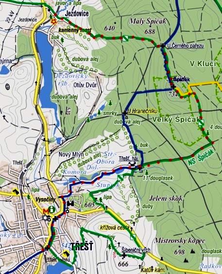 Plánovaná trasa: Jezdovice ZTZ – U Černého pařezu – Špičák – U Křížku – Třešť, hájenka MTZ – Třešť = asi 10 km