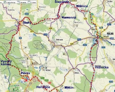 Štoky – posledních osm kilometrů, ještě to jde, tak šup přes les do cíle. Ale u Vysokého kamene mě začíná trochu bolet noha – poslední, třetí krize. Ukazatel hlásí tři kilometry do cíle, to už přece nevzdám!