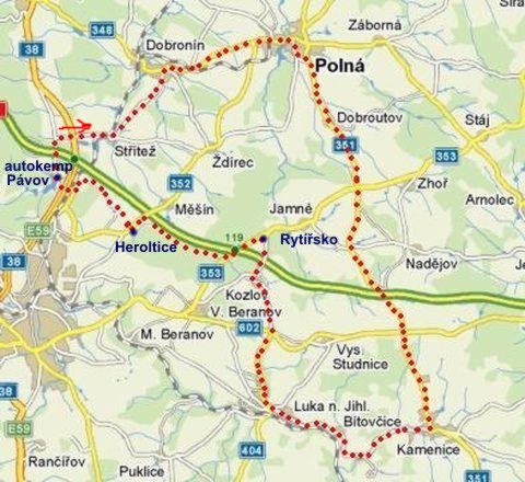 Pokračoval jsem do Bítovčic, druhá samokontrola v pohostinství. Do Luk nad Jihlavou jsem dorazil v jednu hodinu. Cestou jsem potkal jen pár lidí, kteří šli z pálení čarodějnic. Z Luk pokračovala trasa do Kozlova a dále podél dálnice do Heroltic, zde mě už podruhé dohonila trojice pochodníků – měli delší pauzu v hostinci. Do Pávova se pokračovalo kolem závodu společnosti Bosch – až do cíle noční trasy v autokempu.