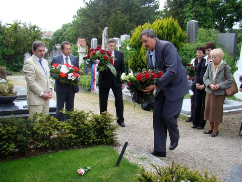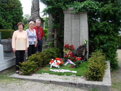 Krátce po poledni jsme byli u hrobu Gustava Mahlera, zúčastnili jsme se spolu s asi čtyřiceti účastníky zájezdu oficiálního položení květin představiteli města a kraje, a pak už jsme měli dost času na to, abychom intenzivně prožili chvíle, věnované vzpomínkám na závěr života osobnosti, která dělá našemu městu i nám, Jihlavanům, čest.