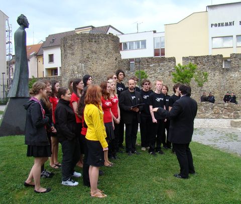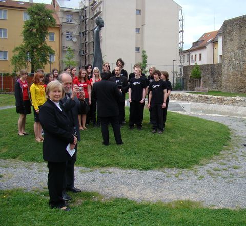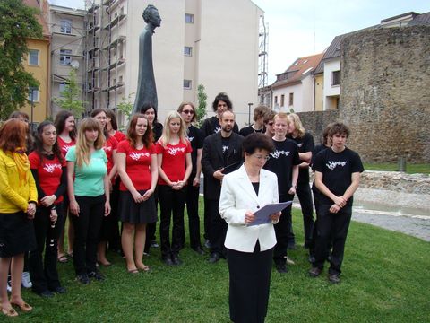 Olga a Josef Poukarovi domluvili vystoupení pěveckého souboru studentů jihlavského gymnázia, kteří nás posluchače svým zpěvem oblažili a zároveň vytvořili hudební most, po němž v tónech proudily jejich radosti a sny k dávnému kolegovi, jenž zhruba před sto čtyřiceti lety prožíval v jiné realitě stejný studentský život.