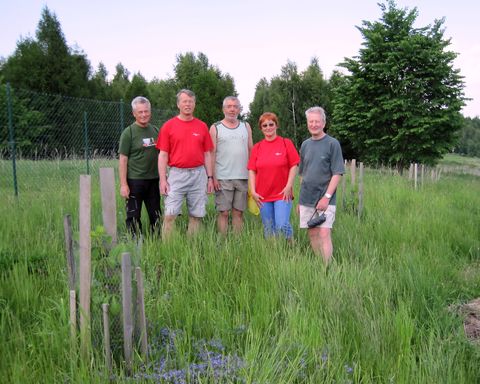 Studánkový průvodce (a vkusných studánkových stříšek původce) Karel Hobza letos zvolil trasu v opačném směru nežli jsme šli loni, a tak naše první zastavení patřilo mladým kaštanům, o kterých jsem tehdy psala. Jak stromky za rok vyrostly, můžete vidět, porovnáte-li tehdejší a následující fotku.