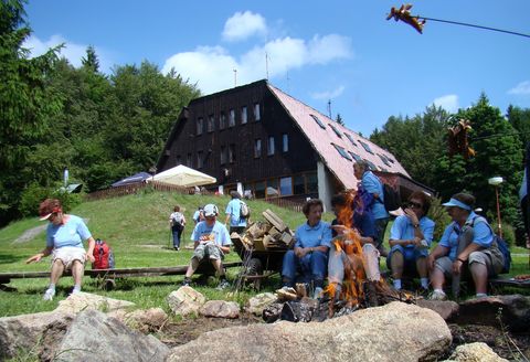 … se vydařil! Po různých trasách, navržených námi, pořadateli, i po jiných, vyzkoušených příchozími v minulosti, dorazilo na prostranství před chatami, kde jsme očekávali naše hosty s občerstvením a diplomy, osmadevadesát lidí, kteří chtěli udělat radost sobě i nám…