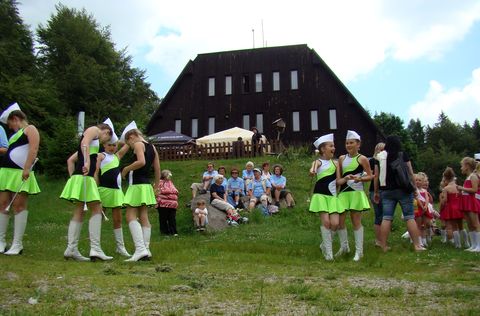 Vystoupení tří družstev mažoretek různého věku bylo pro vnímavé diváky, a jistě i pro účinkující děvčata a jejich rodiče, vzrušující a napínavé (zvláště v pasážích, kdy jsme jim fandili, aby všechny pochytaly do výšky vyhazované hůlky) a z turistického cíle na Čeřínku udělalo slavnost.