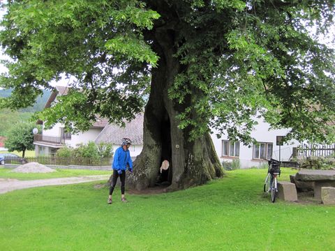 Svým kladným přístupem k celé věci jsme udolali počasí, takže se postupně zlepšovalo až ke stupni, který se dá označit jako „slunečno“. Na oběd jsme se zastavili v Dobré Vodě – vodu mají asi dobrou, ale jídlo, které nám předložili, dobré nebylo, ani jeho cena… Náladu jsme si spravili v nedalekých Praskolesích, kde nás (po kolikáté už?) uvedla v úžas osmisetletá lípa s obvodem zvíci devět metrů… Více se dočtete zde.
