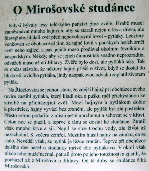 Čas hojí všechny rány, není už, kdo by nešťastníka oplakával. Dnešní příchozí vnímají jen krásu místa, která se zjeví pouze těm, kdož překonají svou lenost a zajdou do lesní hlubiny, posadí se s hrnečkem pramenité vody ke stolu, naslouchají zpěvu ptáků a také možná svému vnitřnímu hlasu…
