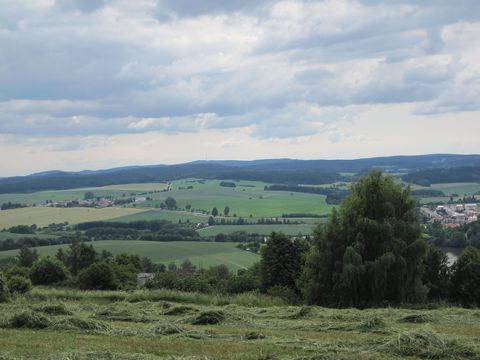Celým územím, nabitým emocemi, jsme se šťastně proznačkovali a ze Šibeničáku popatřili na mírumilovný obrázek věnce vzdálených modrých kopců a vyvýšenou Javořici, která ale na nekvalitní fotce splývá s ostatními – je lepší vystoupat sem a pohlédnout do kraje vlastníma očima.