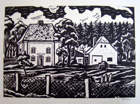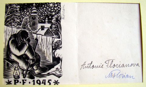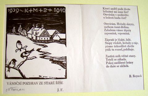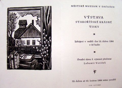 Na následující pozvánce zachytil Michael Florian dům, ve kterém bydleli předtím, než v roce 1933 postavili vilu na okraji obce podle návrhu architekta Storma, jenž také patřil do myšlenkového okruhu Staré Říše. Nástavbu na tomto vesnickém stavení, tzv. „holubník“ vyzdobil prý Josef Váchal.