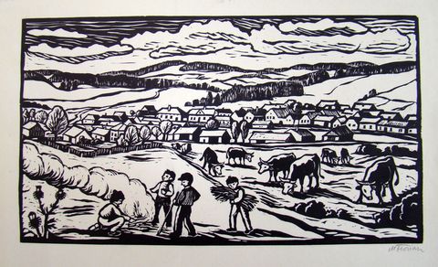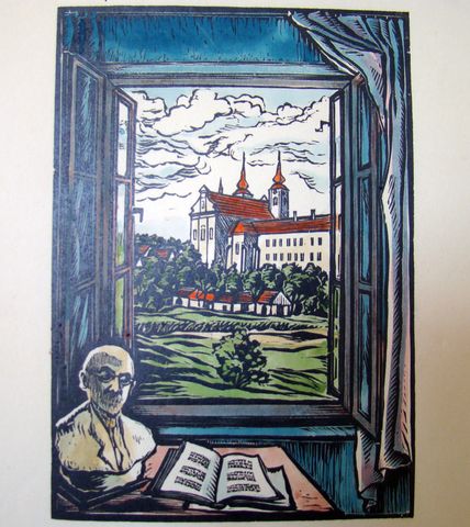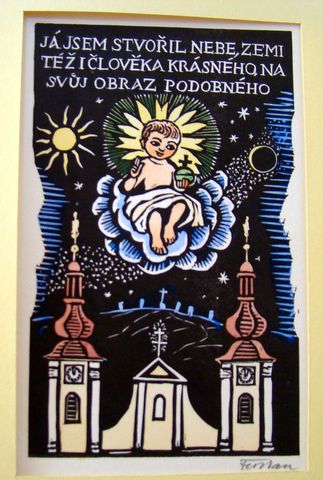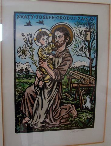 Na výstavě byly jeho novoročenky, ex-libris, portréty významných osobností a světců, pohledy na Telč, Starou i Novou Říši, na kostely, Boží muka, kapličky, na přírodu – vše vlídné, milé, laskavé, znějící známými tóny. Portréty lidí, které jsem znala, byly velmi zdařilé, ocenila jsem, jak pár tahy vystihl charakteristiku, tváře a oči mluvily.