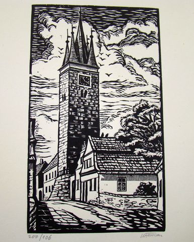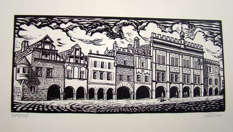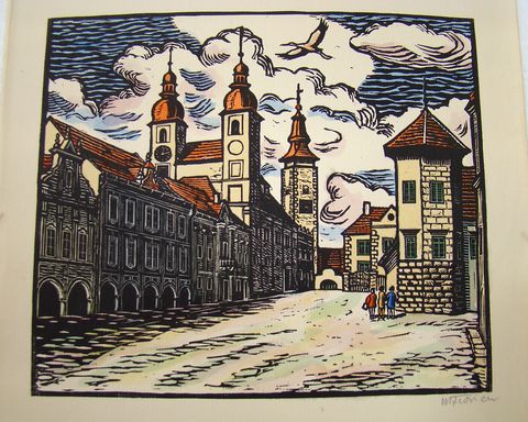 Namlsali jsme se pohledem shůry na město a pocítili uspokojení, když jsme stanuli na známém náměstí. Vše podstatné o Telči jsem myslím popsala ve článku z roku 2009, také fotky nejvýznamnějších objektů jsou v něm zařazené. Dneska vám ukážeme, jak viděl Telč Michael Florian: