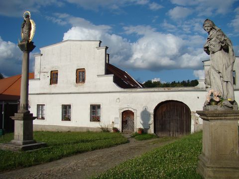 Narodili se v tomto domě, před kterým stojí sloup s Pannou Marií z roku 1673: