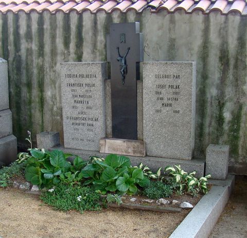 Bohužel byl Josef Polák od pozemského díla brzy odvolán, pochován je zde, na staroměstském hřbitově, pár desítek metrů od rodného domu.