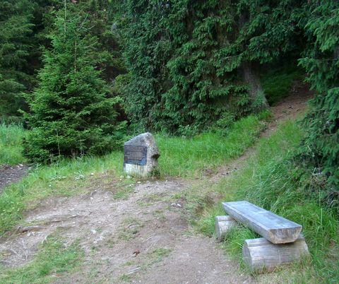 Příjemný osmikilometrový sjezd do Borových Lad (895 m) jsme přerušili jen jednou, abychom v blízkosti Františkova zašli ke kamennému památníčku převaděčům z padesátých let minulého století.