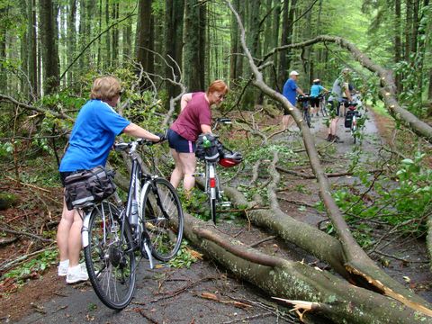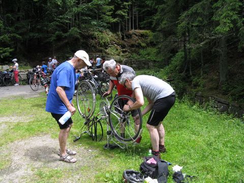 Všichni dobře víme, že letošní léto nás příliš nerozmazlilo, ale dnes byl po noční bouřce nádherný den, les voněl, slunce dělalo divy v přírodě i našich duších. Jen duše zadního kola Miluščina bicyklu nevydržela vnitřní tlak a povolila, snad jen proto, aby se mohli přítomní džentlmeni předvést ve své ochotě a umu zprovoznit zlobivý dopravní prostředek.