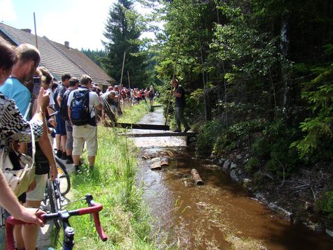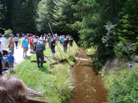 Na Jeleních Vrších se sešlo veliké množství lidí a my jsme byli rádi, že nás naši přátelé nasměrovali právě na tento úsek, plavení dřeva je nevšední činnost a vyprávění přítomných odborníků nás opravdu zaujalo.