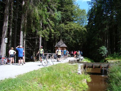 Během pondělí se počasí vylepšilo natolik, že jsme na úterý 12. července 2011 naplánovali zážitkovou trasu, jejíž přednosti vyniknou za příznivých podmínek. Ráno jsme vyjeli na kolech tak, abychom na Kvildě stihli odjezd tzv. „zeleného autobusu“ v 9:10, který nás i bicykly přepravil během hodinové jízdy do Nové Hůrky, kde počínala naše dnešní trasa: