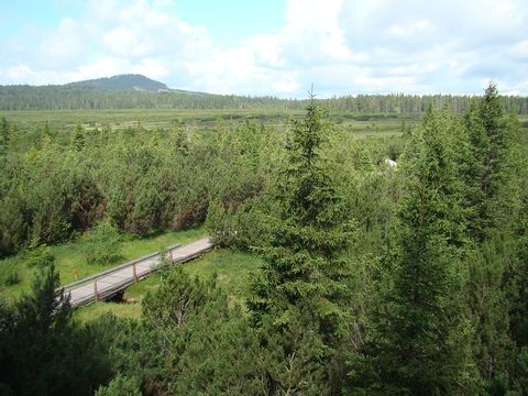 Cesta vede kolem nově vybudovaného informačního centra Svinná Lada, poslední úsek po dřevěném chodníku. Dříve se tu těžila rašelina – vše je popsáno na informačních cedulích naučné stezky – dnes je zde I. zóna NP Šumava. V Chalupské slati, ležící ve výšce kolem 900 metrů, je rašelinné jezírko, největší u nás. To je nevzrušené konstatování – ale neznám nikoho, kdo by nadšením nevydechl při spatření té krásy!