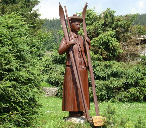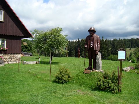 Horská Kvilda je za léta jinak krásná nežli v zimě – návrší s hotelem Rankl a krásný výhled, ale hlavně legenda o šumavském siláku Seppovi, vlastním jménem Josefu Klostermannovi, byly ústředním bodem naší řeči a návštěvy. V článku z února 2010 se dočtete více o něm i o místě, my zde zařadíme jen fotky soch u bývalé Pollaufovy hospody, ke kterým je v létě lepší přístup.
