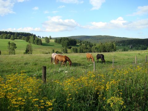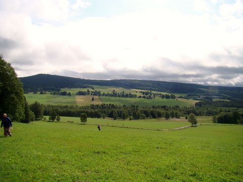 Šumavská krajina na sebe vzala dneska jiné odění, koupala se ve slunci, čechrala si vlasy větérkem, pyšnila se množstvím odstínů zelené a dobře věděla, s jakým zalíbením na ni pohlížíme.