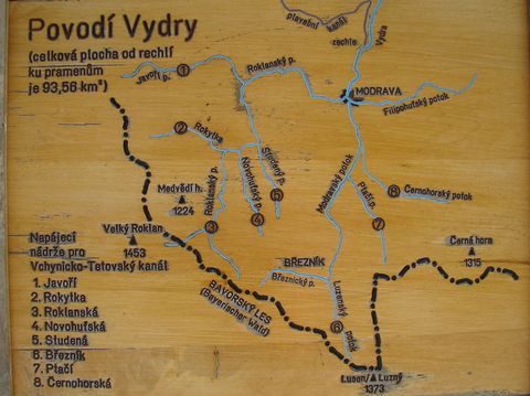 Vidíme, že se zde stékají tři potoky: Roklanský, Filipohuťský a Modravský, jehož pramen je považován za hlavní větev Vydry, která tak měří až k soutoku s Křemelnou 23 km.