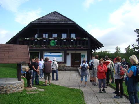 Průvodkyně nám povídala nejen o ochraně šumavské flóry a fauny, ale velmi zajímavě vyprávěla o osidlování zdejšího kraje. Když tu byly v 17. a 18. století zakládány vesnice a hledali se noví osadníci, nechtěli sem čeští sedláci z vnitrozemí přesídlit, protože neuměli obdělávat zdejší chudou půdu – lada, s čímž ovšem bavorští sedláci zkušenost měli, a tak se přistěhovali, dobře hospodařili a krajinu zkulturnili. Bývalo tu až 99% Němců, proto po odsunu zůstaly zdejší vesnice vylidněné a postupně zanikly.