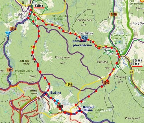 Trasa: Borová Lada – Knížecí Pláně – Bučina – Kvilda – Borová Lada = 24 km