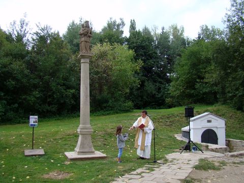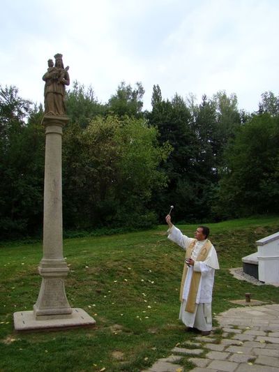 30. srpna jsme byli spolu s několika desítkami účastníků přítomni malé slavnosti, při které farář od sv. Jakuba P. Božik znovu požehnal sochu Panny Marie, protože, jak řekl, dříve bylo běžné žehnat těmto objektům, a tak při prvním umístění u pramene v roce 1736 jistě naši předkové tento posvátný obřad vykonali.