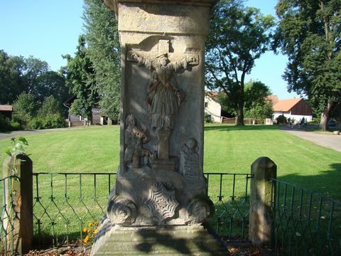 Nepřehlédnutelným objektem je pro návštěvníky sloup Nejsvětější trojice, na jehož podstavci je jedno z mála vyobrazení svaté Starosty u nás.
