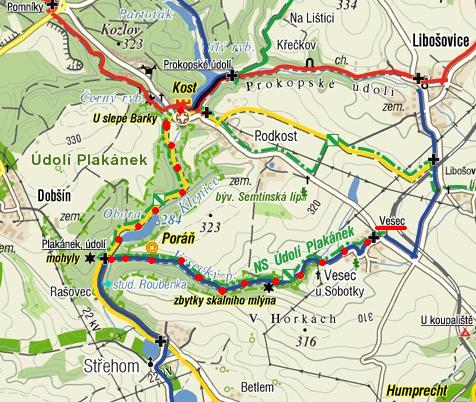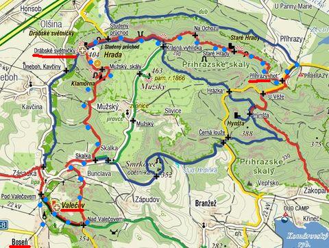 Trasa: Valečov ČTZ – Klamorna – Drábské světničky ČTZ – Příhrazy.