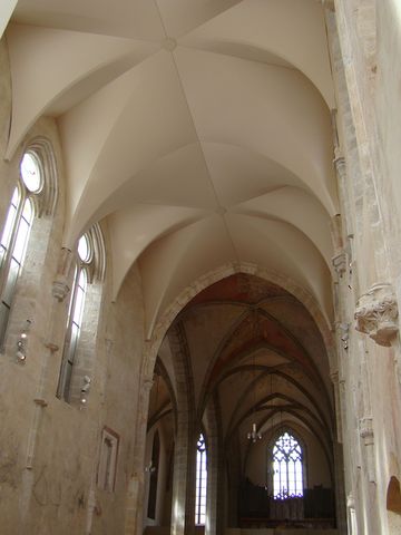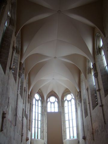 „Rovný strop je zakrytý novými klenbami, které jsou tvořeny speciální dvě desetiny milimetru tenkou fólií uchycenou na ocelových žebrech. Smyslem není do detailu imitovat původní stav, ale vrátit stropu původní celistvost a členění. Nový strop odpovídá původním proporcím. Každé žebro je originální, protože rozměry budovy jsou nepravidelné.“