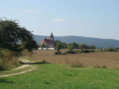 Na kopci za Čáslavicemi jsme viděli na jedné straně kostel sv. Martina s Makovou horou v pozadí,