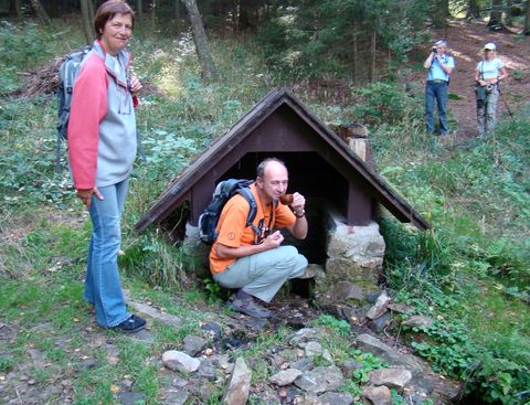 Na rozcestí jsme se rozhodli pro zacházku, asi kilometrovou, ke studánce, nazvané po turistickém činovníkovi, učiteli Ladislavu Kreslovi z Domažlic.