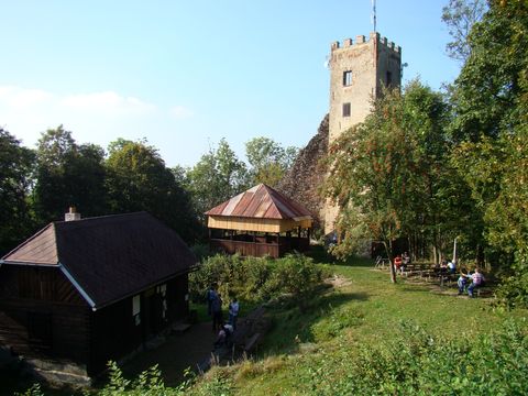 Asi po třech kilometrech jsme stáli na nejzazším zalesněném kopci korunovaném hradem Rýzmberkem, založeném na konci 13. století jako Riesenberg (Obří hrad). Tato mohutná stavba však byla dobyta Švédy a od poloviny 17. století nebyl Rýzmberk obýván a pustl.