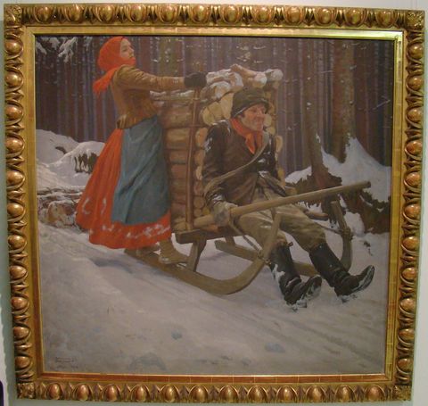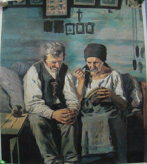 Jeho nejznámější obraz (vznikl v Peci) jsou Výměnkáři – ten jsme si nesměli vyfotit, tak zařazuji, co jsme sehnali z časopisu – ve skutečnosti je krásný až dojemně.