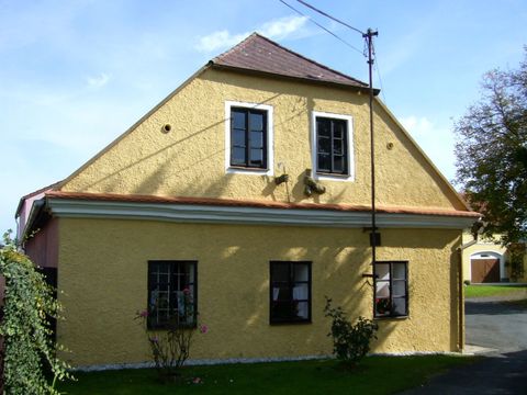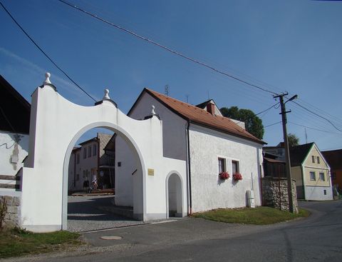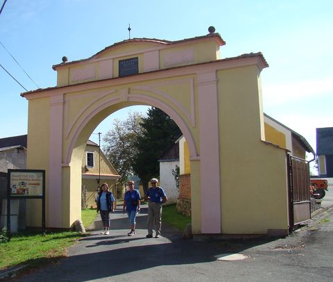 Stále jsme se drželi žluté značky a asi po čtyřech kilometrech jsme se ocitli v Draženově, před nově opravenou rychtou.