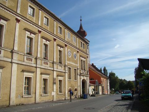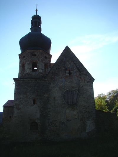 Zpátky do kopce to byla dobrá čtvrthodina, spíš víc, ale konečně jsme stáli na vlídné lesní silničce klesající k Pivoni. Augustiniánský klášter, který je středobodem vesničky, nás ohromil svou rozlehlostí a špatným stavem, na kterém se podepsaly státní statky, které zde v minulých desetiletích hospodařily.