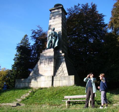 Po ČTZ jsme se prudkým svahem vyšplhali na vrch Hrádek (585 m), kde byl v roce 1895 při příležitosti 200. výročí Kozinovy smrti postaven již zmíněný pomník (socha je vysoká 3,2 m).
