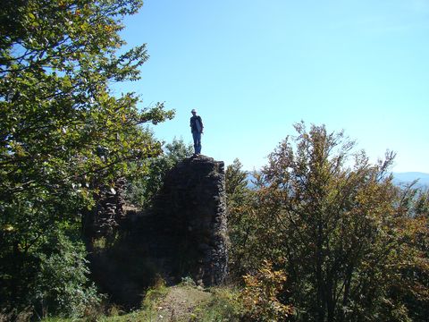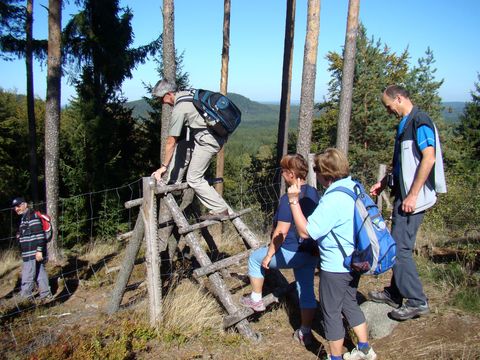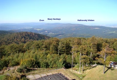 Přešli jsme celý hřeben tvořící Evropské rozvodí Labe – Dunaj, až na posledním 878 metrů vysokém vrchu jsme se dostali ke zbytkům hradu Starého Herštejna, který založen v polovině 13. století je nyní tak vysílen svou bouřlivou minulostí, že popatříme jen na zbytky věže