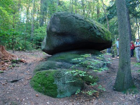 Samozřejmě jsme zkusili, zda se viklá. Viklá! Balvan se opírá jen malou částí o skalnaté podloží, takže má rozkyv 17 centimetrů. Při stavbě železnice byl nechtěně sesunut ze svého kamenného lože a až v roce 2009 byl s pomocí Ing. Pavla Pavla navrácen do původního stavu.