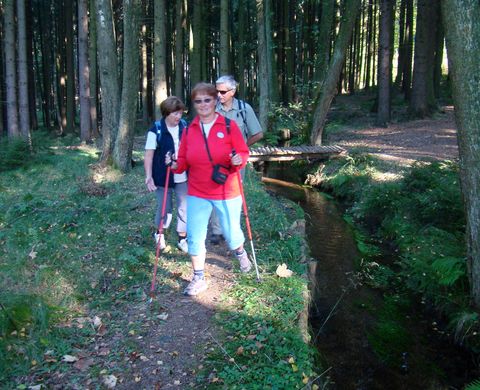 Šli jsme modře značenou cestou lemovanou nádhernými vzrostlými buky, která vedla kolem náhonu Teplé Bystřice, což je technická památka ze 16. století. Kanál začíná na východním svahu Čerchova ve výšce 920 m n. m. a byl vybudován pro přivádění pitné vody do Domažlic – z původních šestnácti kilometrů jeden metr širokého kanálu je v současnosti zrekonstruována polovina, ale v plánu je obnova celé trasy, která i při minimálním spádu dokázala vodu úspěšně dopravit až do města.
